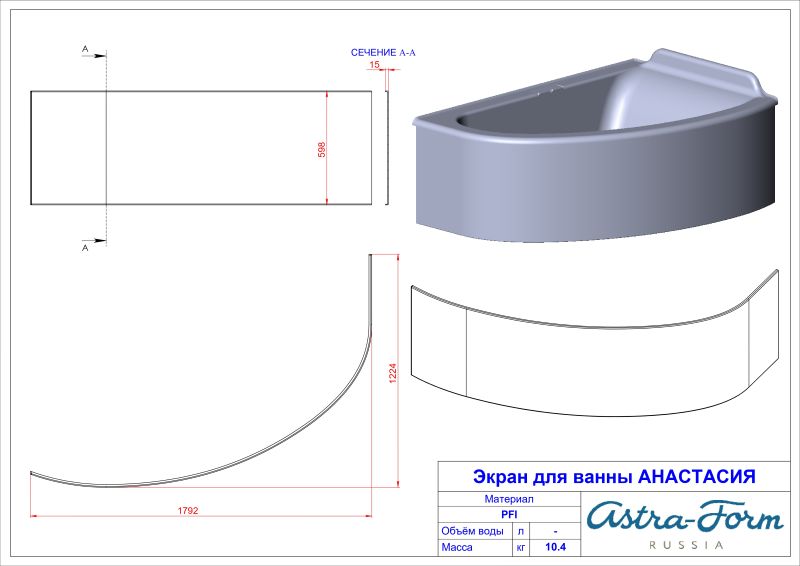 Большая и комфортная ванна с удобным подголовником поможет расслабиться и отдохнуть после тяжелого рабочего дня. Дополнительно комплектуется декоративным экраном.