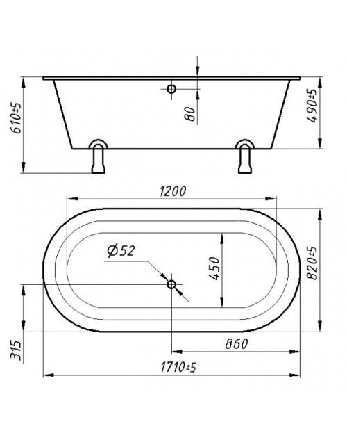 Ванна из искусственного камня Фэма Стиль Феррара на опорах RAL 171x82 см