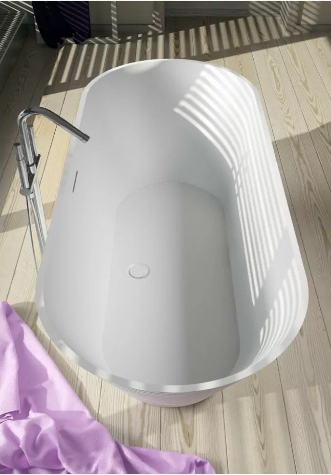 Ванна Solid Surface Riho Barcelona 170х70 - композитная ванна, изготовленная из однородной каменной массы - каменная на ощупь, тёплая внутри. Это имитация мрамора: белый матовый цвет ванны при наполнении водой заиграет оригинальной текстурой камня.
