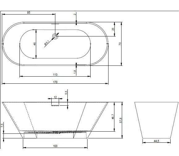 Слив-перелив уже установлен: перелив выполнен в виде удлинённой щели, слив - в виде нажимного клапана Push-Open белого матового цвета, как и ванна.