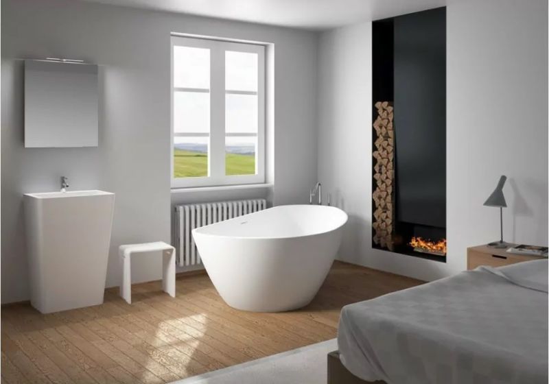 Твёрдая поверхность ванны устойчива к механическим повреждениям, гигиенична и химически нейтральна.