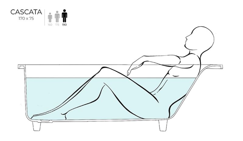 CASCATA – ванна, сочетающая в себе минималистичный дизайн и функциональность. Модель обладает особой эргономикой: прямоугольной чашей с плавным бортом и изящно изогнутыми линиями. Важнейшее преимущество – благодаря крутому наклону спинок и плоскому дну обладатель CASCATA может с комфортом принимать как ванну, так и душ.