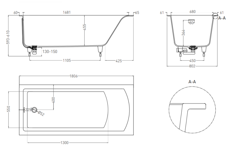 • Регулируемые ножки (ванна с экранами по высоте НЕ регулируется)