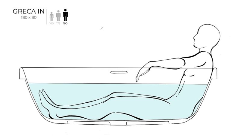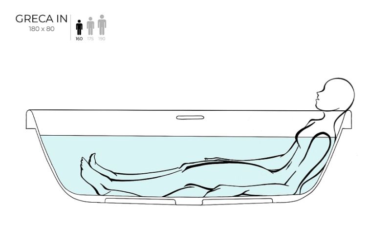 Отдельностоящая GRECA IN сохранила стандартную глубину, став при этом ниже. Благодаря такой конструкции заходить в ванну теперь ещё удобнее.