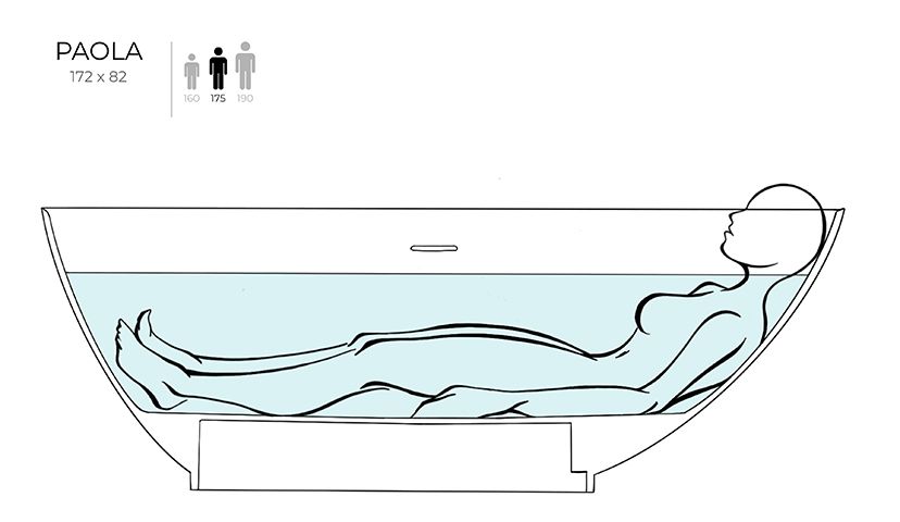 Ванна PAOLA – выбор настоящего гедониста. Нестандартный внешний вид ванны обусловлен её асимметрией — обе стороны достаточно разные, что позволяет расположиться как лёжа, так и сидя, при этом ощущая себя максимально комфортно.