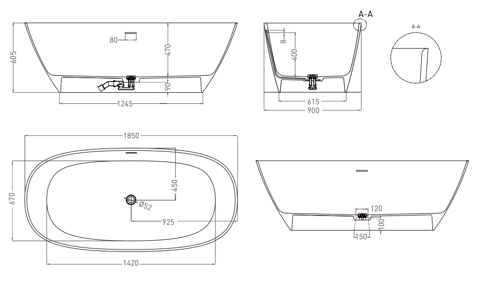 Ванна из искусственного камня Salini Sofia S-Stone 102529MRF 185x90см RAL полностью