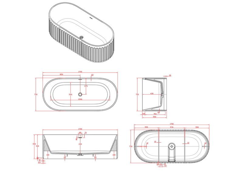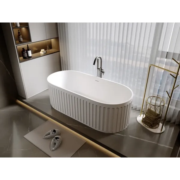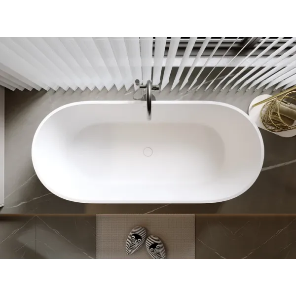 Поверхность ванны приятная на ощупь и не холодная благодаря низкому уровню теплопроводности, что делает процесс эксплуатации очень приятным.