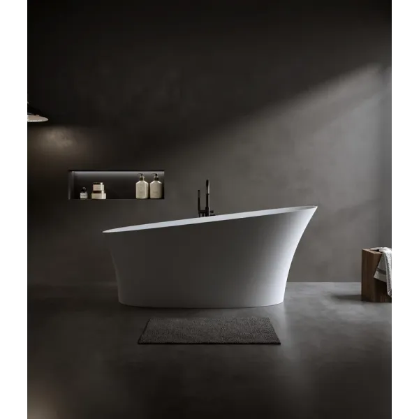 Поверхность ванны приятная на ощупь и не холодная благодаря низкому уровню теплопроводности, что делает процесс эксплуатации очень приятным.