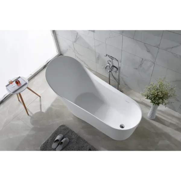 Поверхность ванны приятная на ощупь и не холодная благодаря низкому уровню теплопроводности, что делает процесс эксплуатации очень приятным.