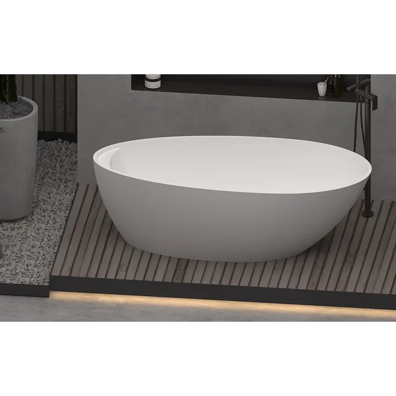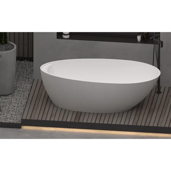 Поверхность ванны приятная на ощупь и не холодная благодаря низкому уровню теплопроводности, что делает процесс эксплуатации очень приятным.
