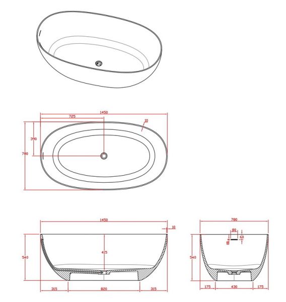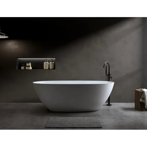 Поверхность ванны приятная на ощупь и не холодная благодаря низкому уровню теплопроводности, что делает процесс эксплуатации очень приятным.
