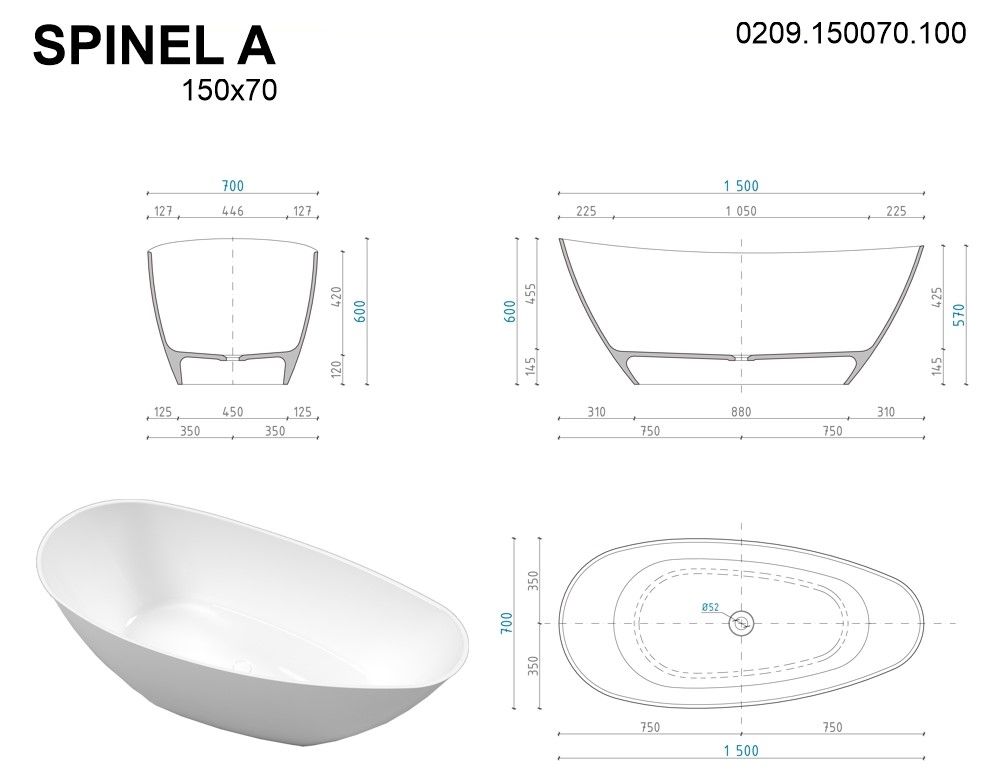 Для создания ванны SPINEL A используются материалы премиум класса, качество которых соответствует высочайшим стандартам.
