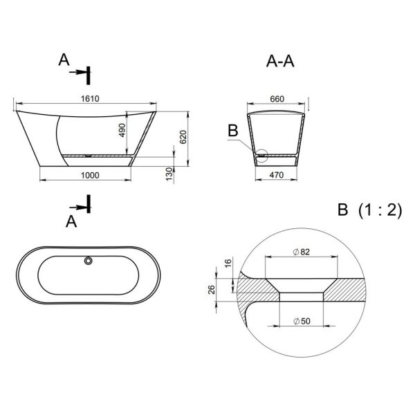 Ванна отдельностоящая Holbi Afina 161x66см бетон 2.01.004.44.4