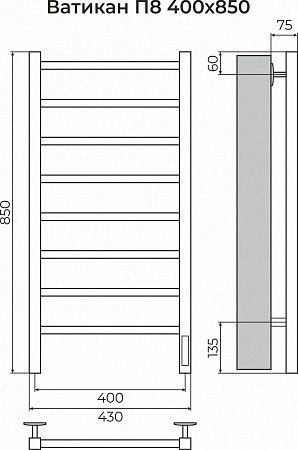Ватикан П8 400х850 Электро (quick touch) Полотенцесушитель TERMINUS