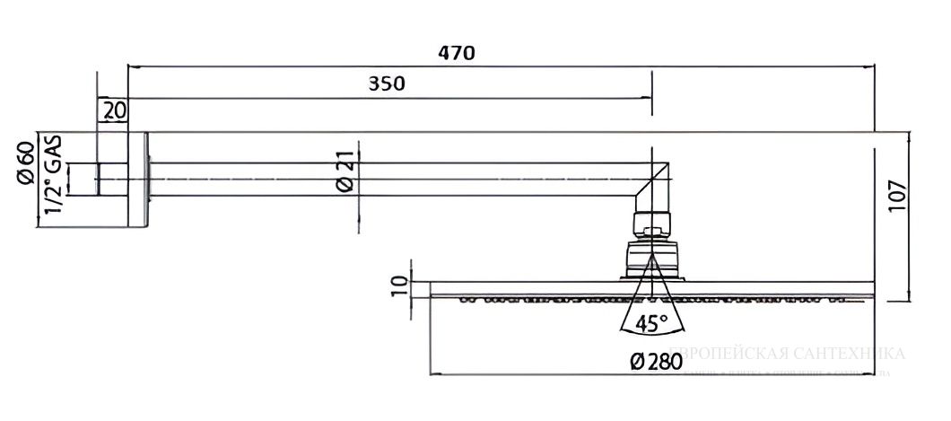 Держатель диаметром 21 мм и длиной 400 мм обеспечивает надежное крепление, позволяя удобно регулировать высоту и угол наклона душа для максимального комфорта. Широкое сопло душа создает мощный и равномерный поток воды, обеспечивая приятное ощущение во время принятия душа. Простота установки и ухода за верхним душем делает его отличным выбором как для новых, так и для обновленных ванных комнат.