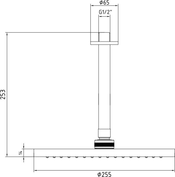 Верхний душ E.C.A предназначен для использования в ванных комнатах. Модель оснащена душевой головкой круглой формы. Изделие выполнено из латуни, которая отличается прочностью, долговечностью и устойчивостью к перепадам температуры.Черный круглый верхний душ 25 см, с потолочным держателем.