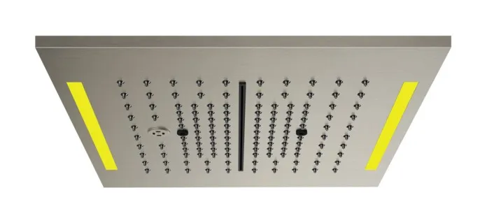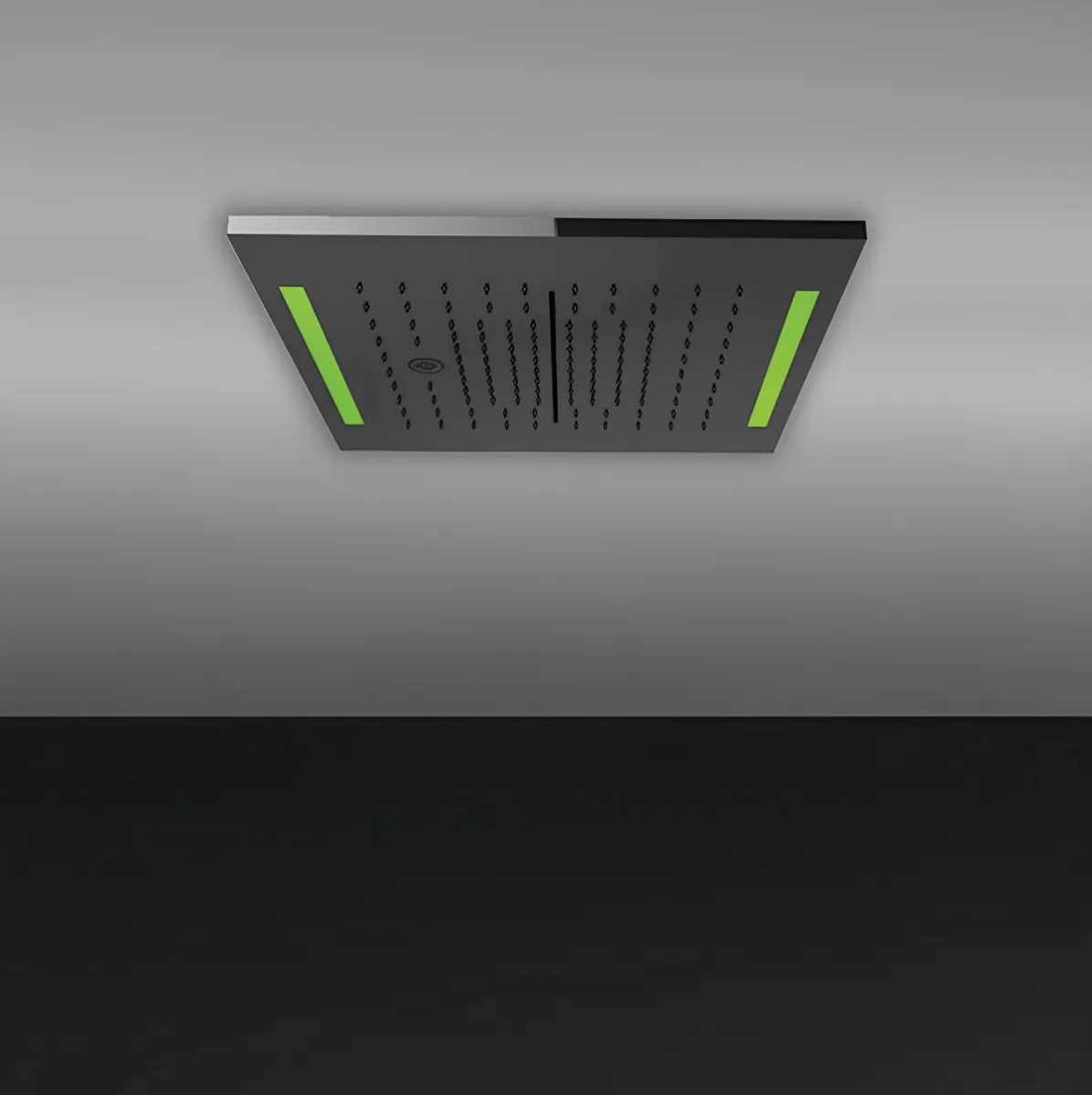 Верхний душ Gessi Colour в цвете Mirror Steel воплощает идею мультисенсорного душевого опыта. Потолочная конструкция с размерами 350x350 мм обеспечивает равномерное распределение воды по всей площади, предлагая три режима: тропический ливень, водопад и распыление. Каждый из них предназначен для разных состояний — от расслабления до тонизирующего эффекта.