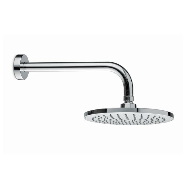 Латунная верхняя круглая душевая лейка «тропический дождь» с кронштейном и выводом из стены, диаметр 200 мм.
