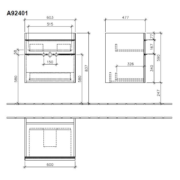 Villeroy Boch A924 01FP VENTICELLO Тумба под раковину 603x590x502 мм, для раковин Venticello 4124 65/66/67, крепежный комплект, цвет Glossy Grey