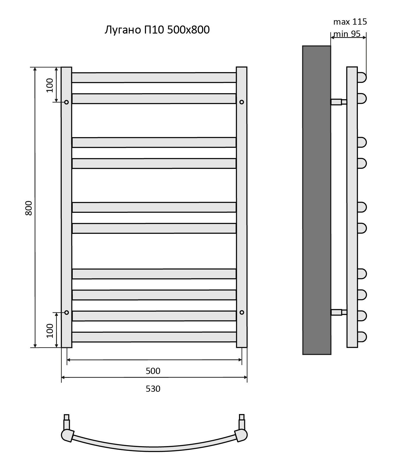 Полотенцесушитель водяной Aquatek (Акватек) Лугано П10 500х800 мм, черный муар, подключение нижнее/диагональное, сверхпрочная пищевая нержавеющая сталь AISI 304L, гарантия 10 летХарактеристики:Dх29,без фитинговКомплектация:полотенцесушитель;