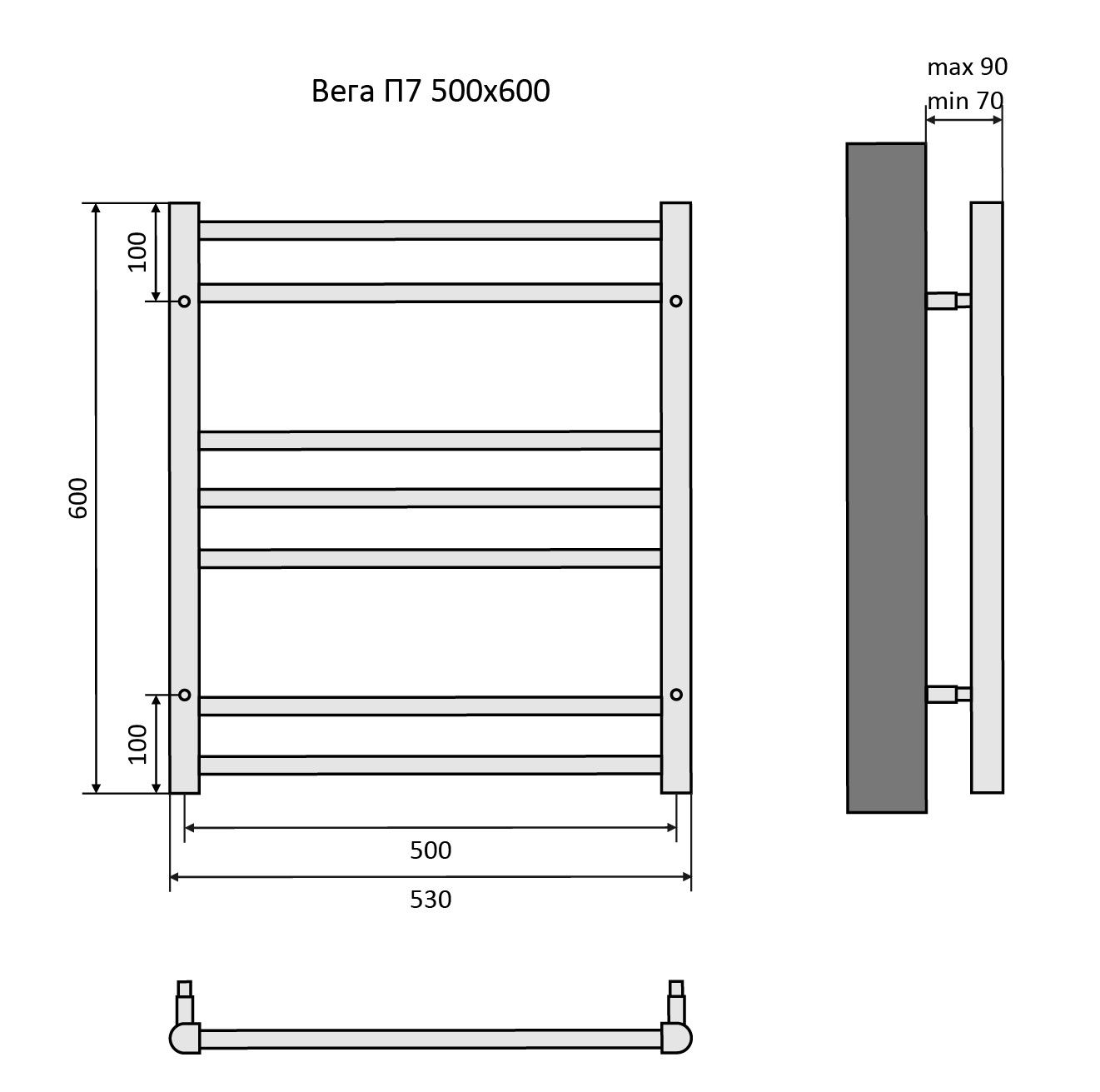 Водяной полотенцесушитель Aquatek Вега AQ DR0760BL П7 50x60см чёрный муар купить
