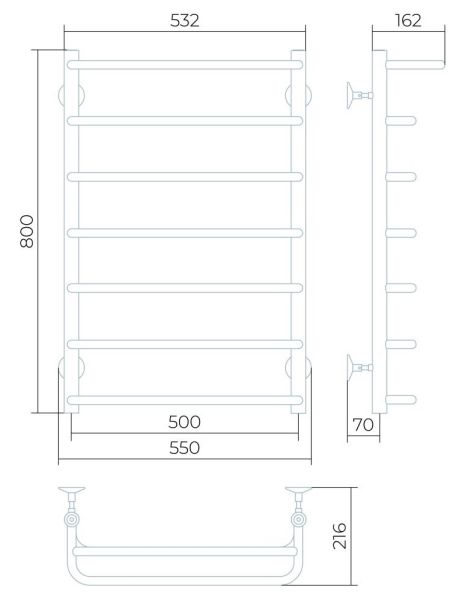 Водяной полотенцесушитель Larusso Стандарт П7 с полкой 50x80см хром 4670078535313