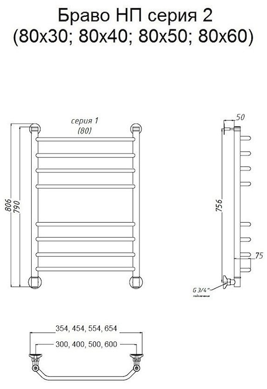 Водяной полотенцесушитель Тругор Браво НП 2 80x50см хром Браво2/нп8050