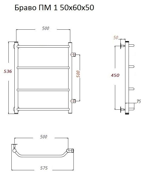 Водяной полотенцесушитель Тругор Браво ПМ 1 50x60x50см хром Браво1/ПМ506050