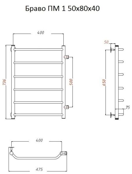 Водяной полотенцесушитель Тругор Браво ПМ 1 50x80x40см хром Браво1/ПМ508040