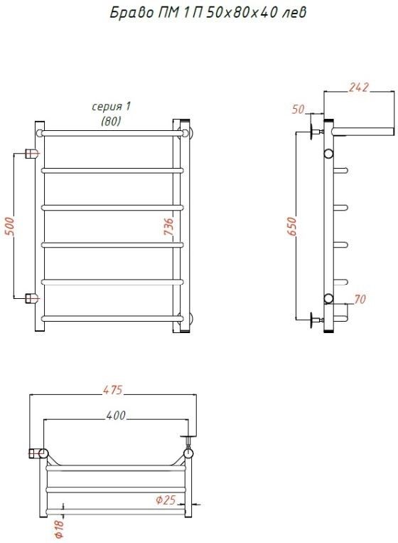 Водяной полотенцесушитель Тругор Браво ПМ 1 П 50x80x40см с полкой левый хром Браво1/ПМ508040Плев купить