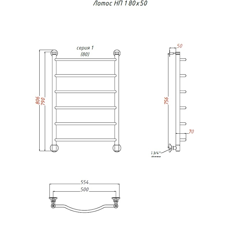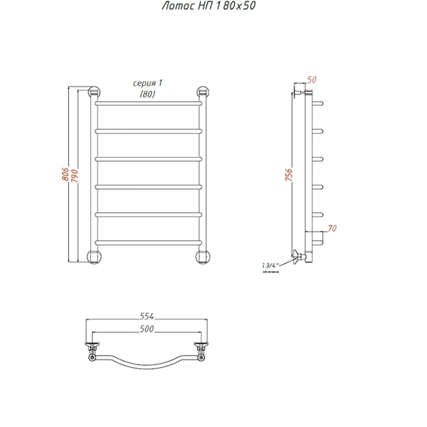 Водяной полотенцесушитель Тругор Лотос НП 1 80x50см хром Лотос1/нп8050