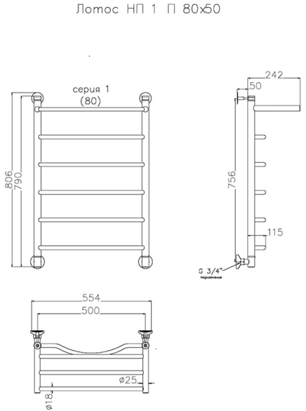 Водяной полотенцесушитель Тругор Лотос НП 1 П с полкой 80x50см хром Лотос1/нп8050П