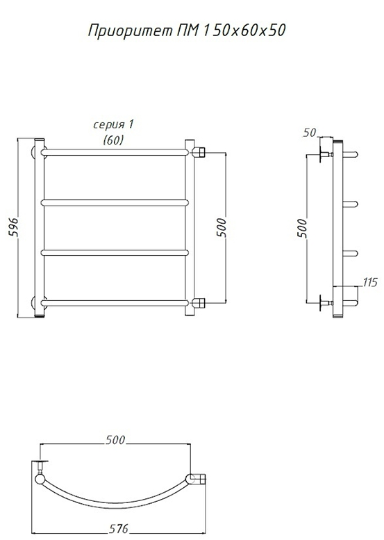 Водяной полотенцесушитель Тругор Приоритет ПМ 1 50x60x50см хром Приоритет1/ПМ506050 купить