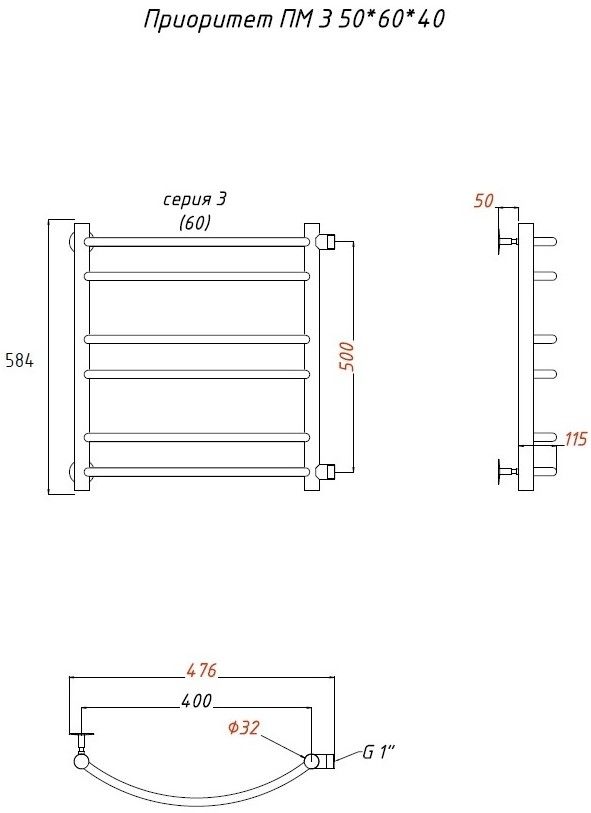 Водяной полотенцесушитель Тругор Приоритет ПМ 3 50x60x40см хром Приоритет3/ПМ506040