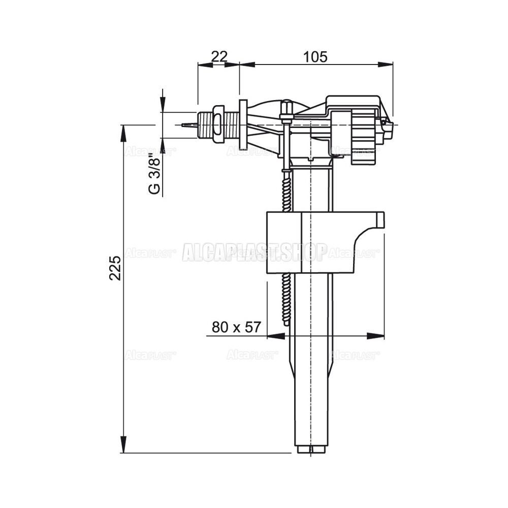 Впускной механизм AlcaPlast с боковой подводкой (для пластиковых бачков) A15P-3/8"