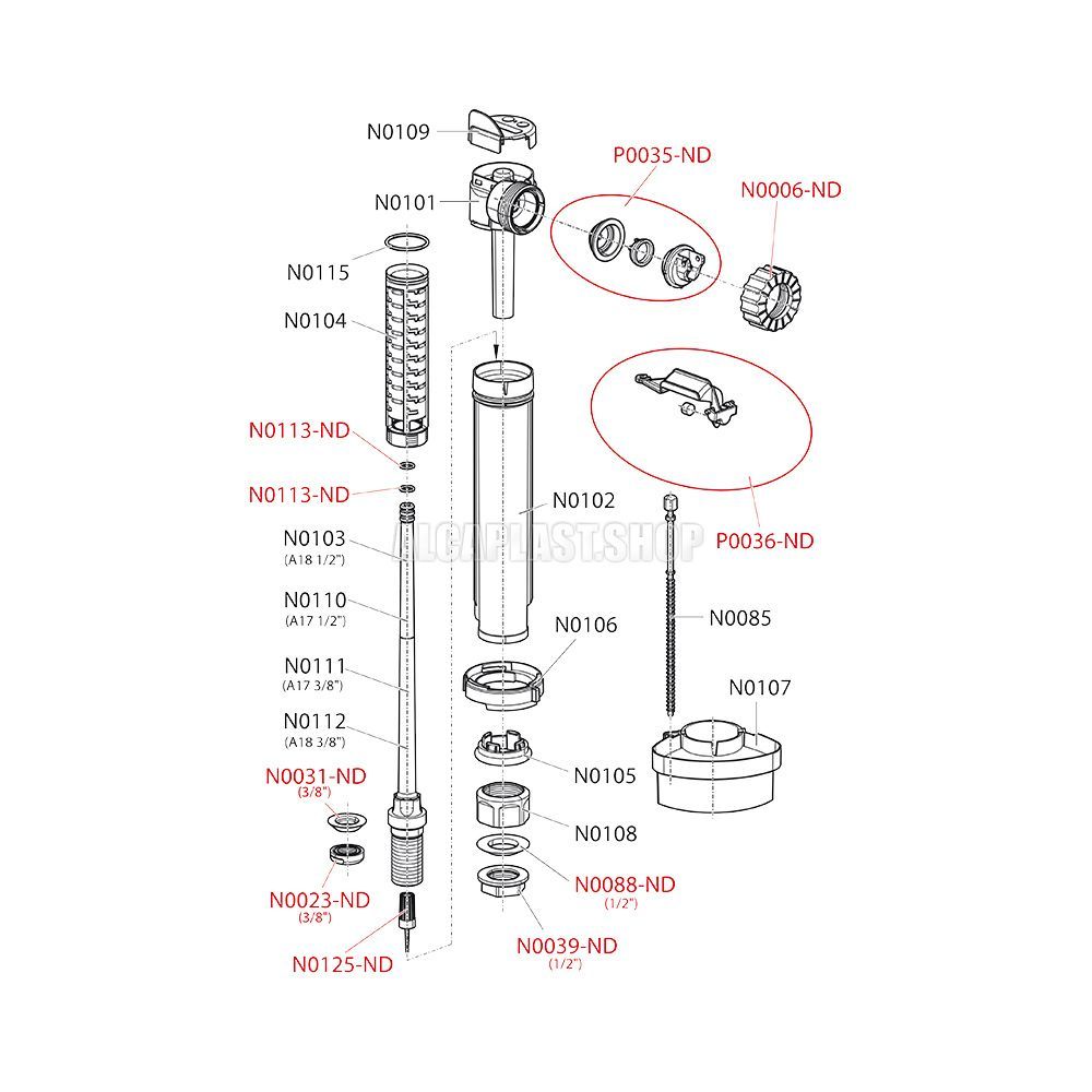 Впускной механизм AlcaPlast с нижней подводкой A17-1/2"