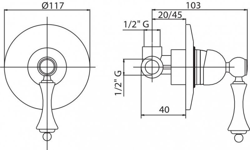 Встраиваемый однорычажный смеситель для душа, бронза Cezares MARGOT-DIM-02-Bi