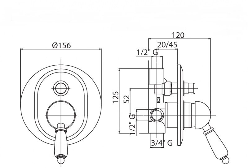 Оснащение: скрытая монтажная часть, дивертор