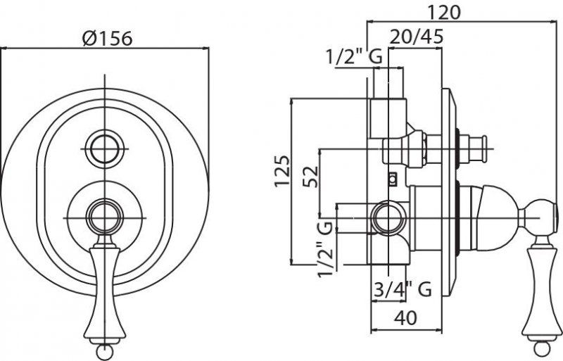 Оснащение: скрытая монтажная часть, дивертор, девиатор