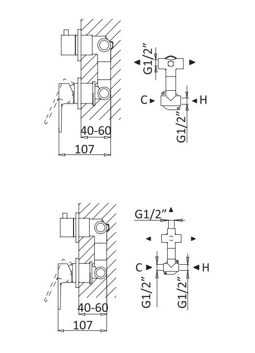 Оснащение: скрытая монтажная часть, дивертор поворотный