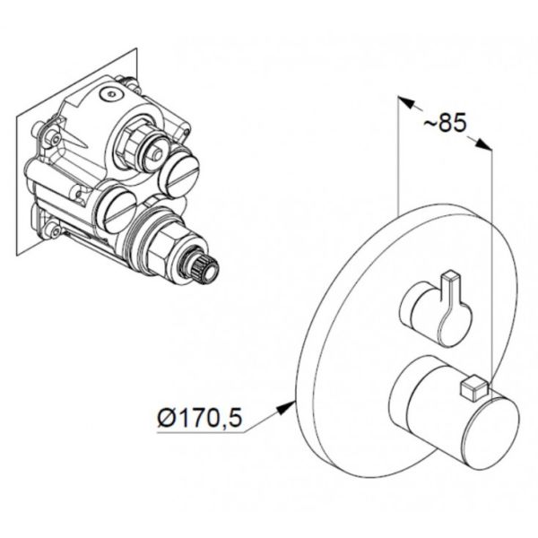 Встраиваемый смеситель для душа Kludi Nova Fonte Puristic с термостатом чёрный матовый 208353915