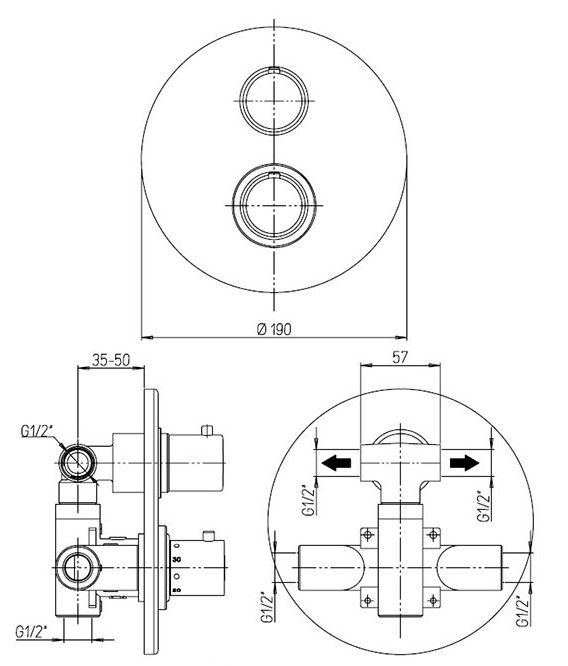 Коллекция COX выводит минимализм на новый уровень. Функциональность и традиционное качество PAINI представлено в лаконичной форме в встраиваемом смесителе для душа с дивертором. Поток воды регулируется термостатом, что позволяет устанавливать нужную температуру и не зависеть от перепадов давления воды. Данный смеситель позволяет распределить поток воды на два выхода и подключить несколько устройств, например, верхний душ и ручную лейку. Встраиваемые смесители PAINI поставляются в полном сборе - внутренняя и внешняя часть.