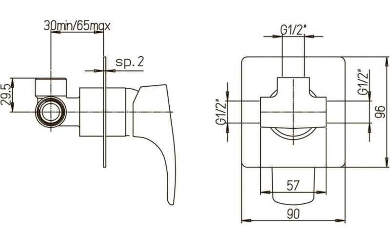• Встраиваемый монтаж скрывает все соединения и оставляет на виду только рычаг управления, что добавляет в интерьер дизайнерский акцент, экономя пространство.