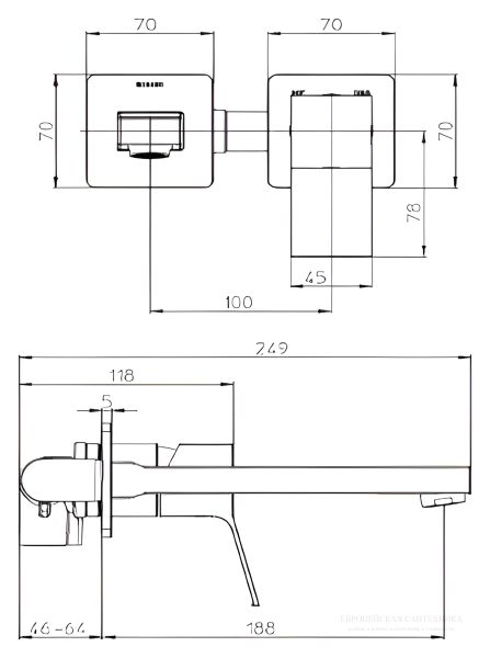 Bossini Aki смеситель для раковины, однорычажный, встраиваемый, настенный, внешняя часть, излив 185 мм, цвет Matt Black.
