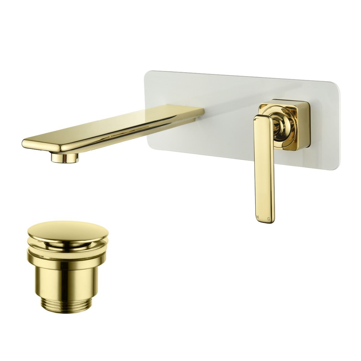 Встраиваемый смеситель для раковины Lemark Mista LM6426WG с донным клапаном белый/золото