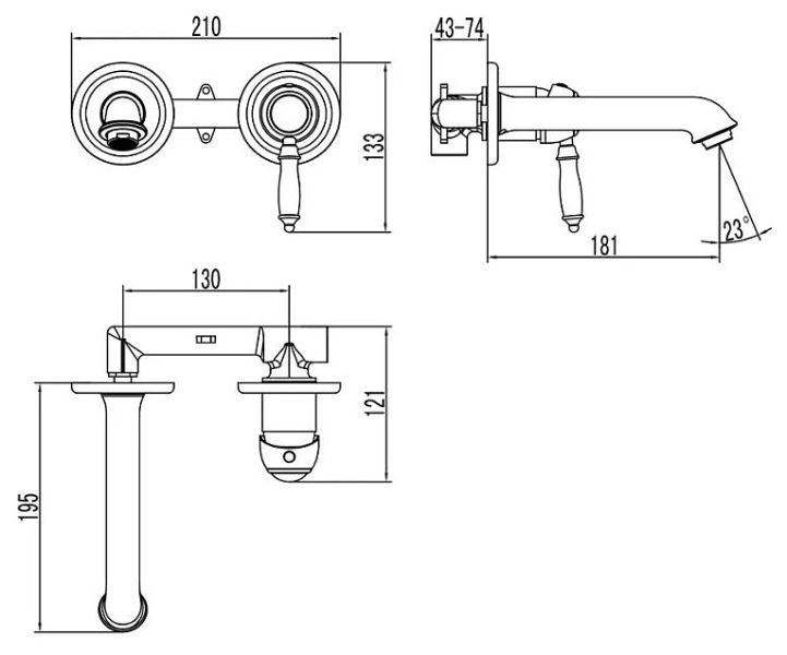 • Угол поворота аэратора: 23 °