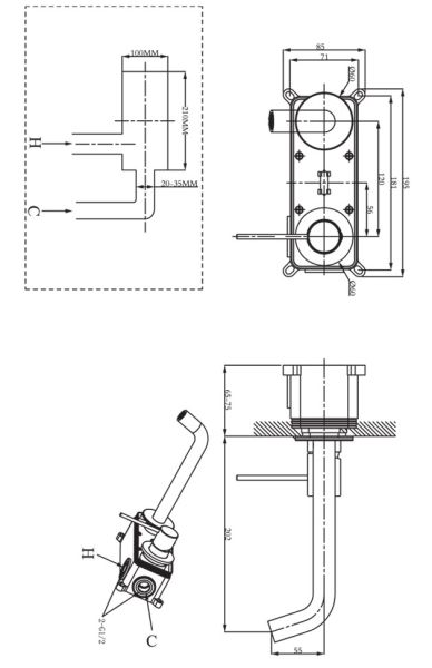 Смеситель для раковины встраиваемый Raiber premium RPB-004 коллекция Graceful, матовый черный Подробнее