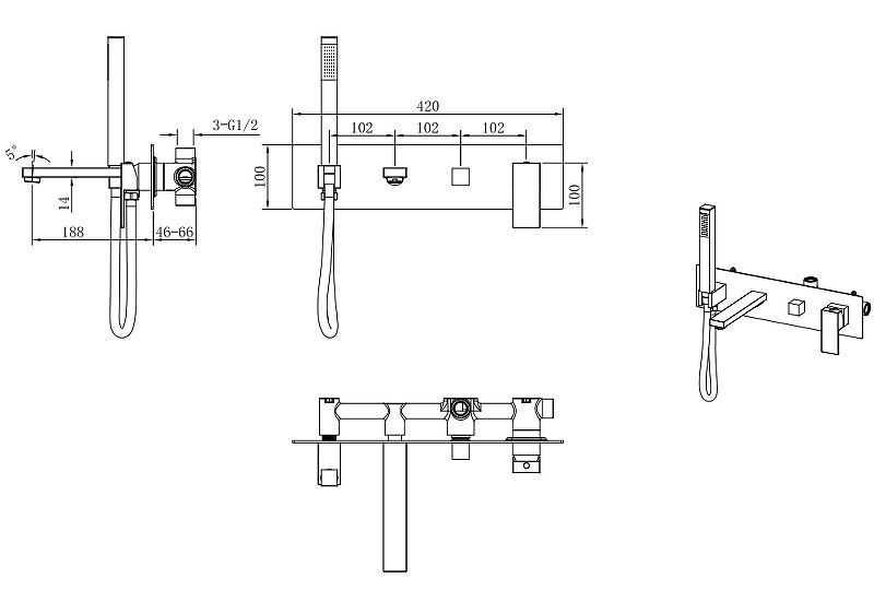 Длина душевого шланга: 150 см.