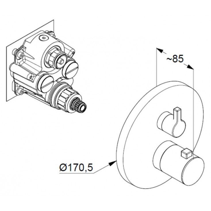Встраиваемый смеситель для ванны и душа Kludi Nova Fonte Puristic с термостатом чёрный матовый 208303915