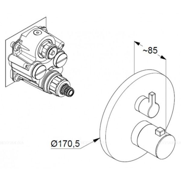 • встраиваемый смеситель для ванны и душа с термостатом